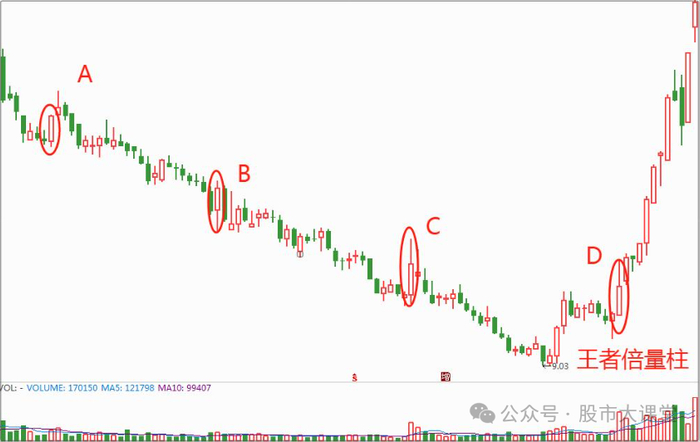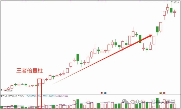 所谓王者倍量柱,是指股价在相对低位时,出现一根放量在1.5-4倍之间的阳线,而后3天呈现出“量缩价升”的信号,同时这3日平均量能低于倍量柱量能,这是典型的主力行为。