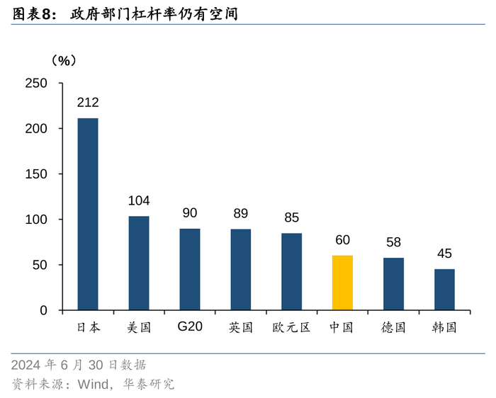 其中,中央加杠杆方向相对确定,力度较大。此前财政部和新华社预告过“中央财政还有比较大的举债空间和赤字提升空间”。今年12月的政治局会议提到“更加积极的财政政策”, “加强超常规逆周期调节”,暗示了赤字率可能明显突破。