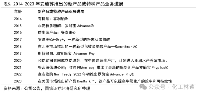 加大与国内团队的研发合作,展现央企责任担当。作为中国中化旗下专注于动物营养领域的创新性企业,安迪苏研发创新机构已于2023年初被中国中化集团定位为“中化动物营养中心研究所”。安迪苏加强了与多个国际实验室、大学及研发机构紧密合作,不断加强与科学界联系,并通过赞助不同技术的研创项目,来吸引优秀的科技人才。近些年来,安迪苏相继与四川农业大学正式签署启动关于猪营养研究合作项目,与北京大学化工学院和天津大学建立了两项长期合作,将在生物工程和创新结晶技术方面的颠覆性技术和产品开发方面展开合作研究,与中国农业科学院动物营养国家重点实验室建立合作关系。此外,从法国实验农场开始,安迪苏全面致力于开发新的数字管理技术来运行其实验农场。在经过精确营养评估(PNE工具)的长期开发之后,安迪苏目前也开始在中国开展此业务,中国市场饲料原料的特殊性需要针对性的开发分析研究。我们认为,安迪苏作为全球领先的动物营养专家,通过与国内科研机构合作,可以针对性解决当前我国饲料行业的痛点问题,有助于中国养殖业及饲料产业的健康发展,展现出安迪苏作为央企的责任担当。