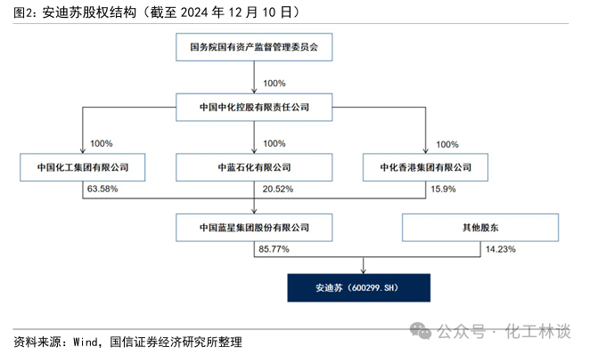 公司是“中化”系央企。安迪苏的直接控股股东为中国蓝星(集团)股份有限公司,直接持有公司85.77%的股权,实际控制人为中华人民共和国国务院国有资产监督管理委员会。