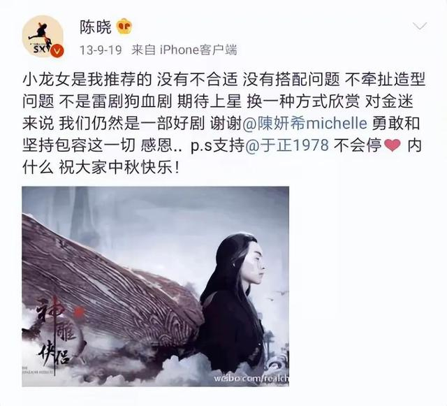 在这一艰难时刻,与她搭档的陈晓却挺身而出,在台前台后不遗余力地维护陈妍希。他不仅替陈妍希背下了 “选角不当” 的黑锅,公开表示小龙女是他推荐陈妍希来演的,还对陈妍希的勇敢表现赞不绝口,极力包容她在表演中所面临的一切困境与压力。