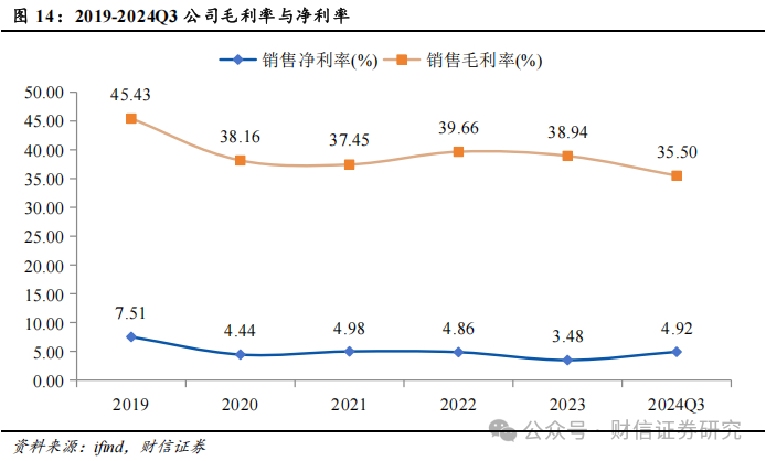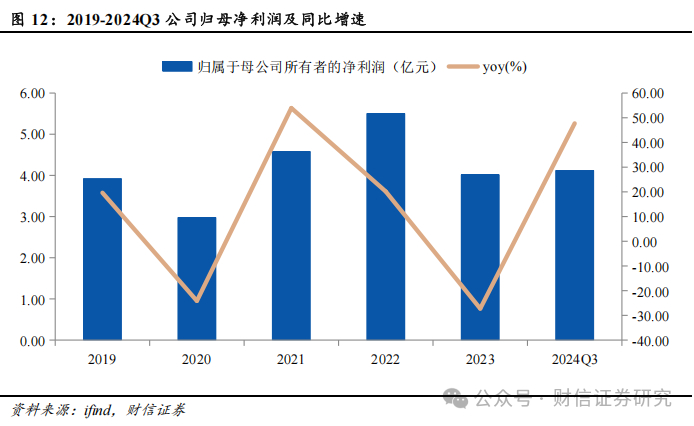 2023年利润表现有所下滑,2024年恢复增长。2022年公司归母净利润达到5.50亿元,为历史新高,2023年归母净利润下滑至4.01亿元,2024年重新恢复增长。2024年前三季度公司实现归母净利润4.12亿元,同比增长47.73%,实现扣非归母净利润3.71亿元,同比增长47.30%。