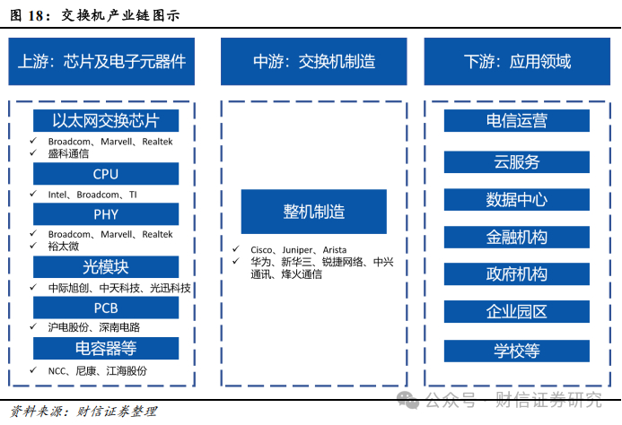 交换机产业链:公司主要涉足中游交换机制造环节