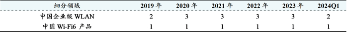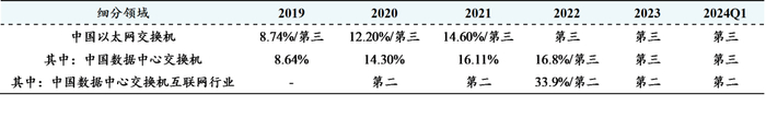 表1:2019-2024Q1公司交换机市占率排名