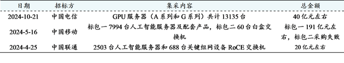 表5:2024年电信运营商算力集采项目汇总