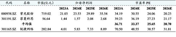 综上,我们预计公司2024-2026年实现营业收入127.50/146.69/172.02亿元,同比增长10.47%/15.05%/17.27%,实现归母净利润5.83/7.33/8.89亿元,同比增长45.20%/25.87%/21.26%,对应EPS为1.03/1.29/1.56元,对应当前价格的PE为49/39/32倍。公司深耕数据中心交换机领域,2024年上半年公司数据中心产品在互联网行业市占率排名第二,有望显著受益于智算中心算网设备需求激增。维持“增持”评级。