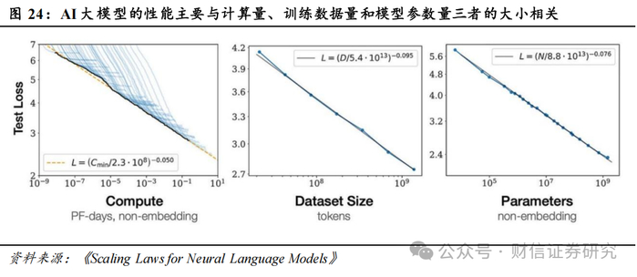Scaling Law仍是AI大模型技术发展的指引,模型效果取决于算力和数据。“Scaling Law”,直译为缩放定律,最早由OpenAI的技术团队在《Scaling Laws for Neural Language Models》论文中提出,其内涵为通过增加计算量、训练数据量和模型参数量,可以显著降低模型误差,从而提升模型性能。当下确实也有理解认为,“Scaling Law”存在一些难以解决的问题,比如成本问题、数据问题等等,或许现存的AI大模型技术方案都无法实现最终的通用人工智能,但以目前情况来看,Scaling Law仍是AI大模型技术发展的指引,AI大模型的模型效果取决于算力和数据。