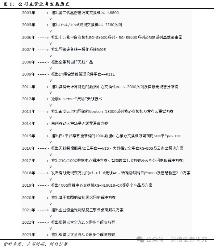 公司设立以来始终专注于网络设备和网络安全产品的研发和销售工作,随着云计算和虚拟化技术的进步,2013年公司发布业内首个云课堂解决方案。此后,公司云桌面业务得到快速发展,并与网络设备、网络安全业务共同构成公司三大主营业务板块。