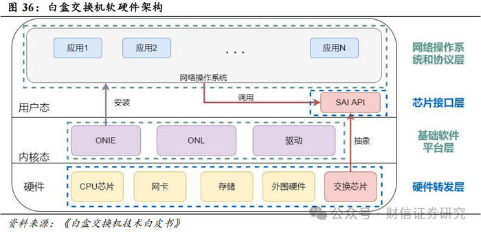 资料来源:《白盒交换机技术白皮书》,阿里巴巴开发者社区,字节跳动 SYSTech,财信证券