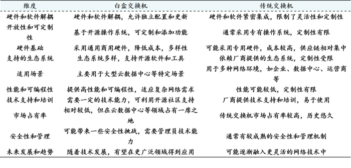 表8:白盒交换机与传统交换机的对比
