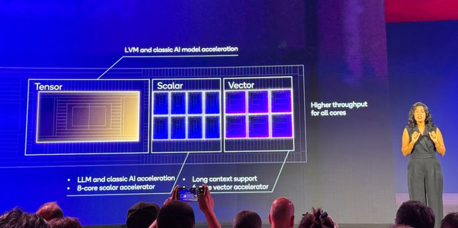 为了支持生成式AI和多模态模型,实现更快推理,Hexagon NPU增加了更多内核,更多标量内核可以支持更长内容,达到4k上下文窗口,更多的向量内核可以加强对大语言模型和传统AI的支持。