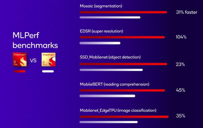 全面升级的Hexagon NPU就像是交响乐团里令人惊叹的小提琴手。全新架构的Hexagon NPU性能提升45%,能效提升45%