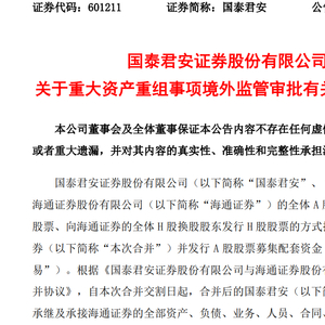 国泰君安合并海通证券又迎新进展!香港证监会:批准