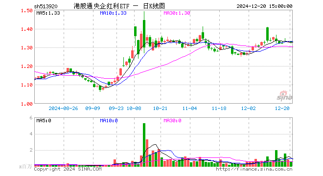 12月20日港股通央企红利ETF(513920)份额增加50.00万份,最新份额8.22亿份,最新规模10.69亿元