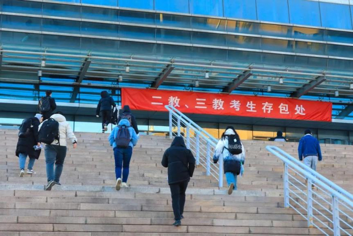 考生们有序列队,进入考场
