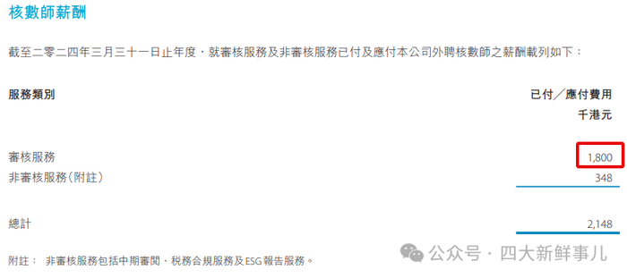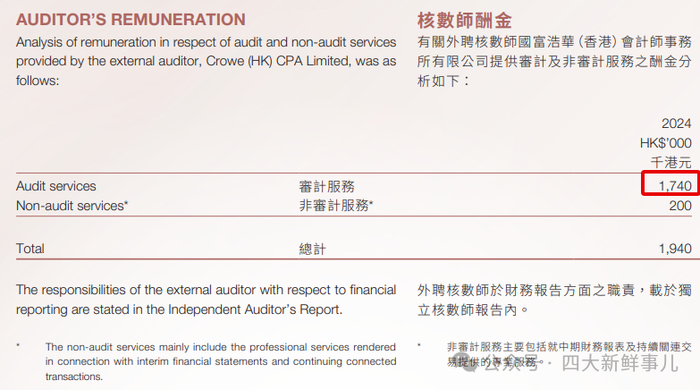 根据该公司2023/24年年度报告披露,该公司2024年度支付国富浩华1,740,000港元(折合人民币约163万元)的审计费用。