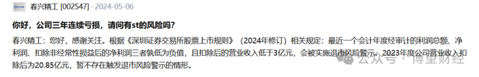 春兴精工明显有些“伤了元气”,4年累计亏损超过25亿元。这样业绩令投资者们感到担忧。,担心起出发退市条件。春兴精工的“脖子够硬”,多次明确回复其“不存在被ST或实施退市风险警示的相关情形”。