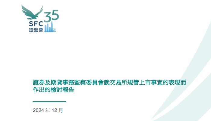 香港证监会,于2024年12月20日发表有关联交所规管上市事宜表现的检讨报告。