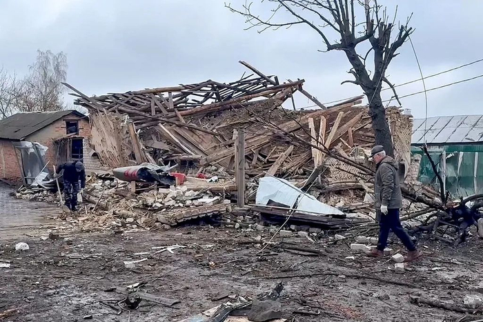 当地时间2024年12月21日,俄罗斯库尔斯克州,一栋居民楼被乌克兰武装部队打击摧毁。视觉中国 图