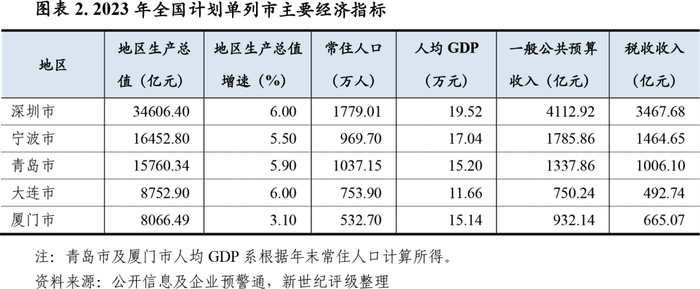 截至2024年9月末,厦门市存续城投债余额为149.00亿元,均为市本级城投债,下辖各区已无存续城投债;全市城投债存续企业2023年末带息债务合计为864.63亿元,分别为当期全市及市本级一般公共预算收入的0.93倍和1.34倍,债务压力轻。