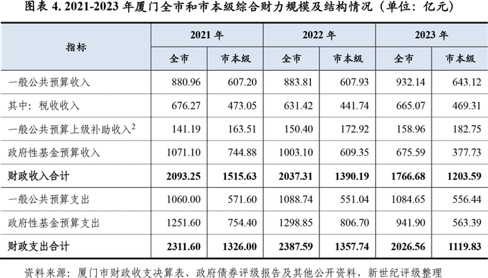2023年以来厦门市政府债务规模仍保持较快增长,增量主要来自于市本级专项债券,募集资金主要用于重大新城片区、交通基础设施建设、民生补短板项目等;2023年末全市地方政府债务余额是2023年一般公共预算收入的2.3倍,较上年基本持平,仍处于较低水平,总体债务风险安全可控。