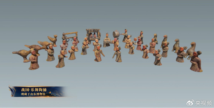 在文物中看到和合共生的中华文化。现藏于湖北省博物馆的战国时期的曾侯乙编钟,一钟双音、和谐共振,是礼乐文化的集大成者;现藏于山东博物馆的战国乐舞陶俑,将两千多年前的乐舞画面定格成一帧和谐而有序的礼乐场景,是和谐社会的微观缩影;结合现藏于上海博物馆的西周晋侯稣钟,三件国宝,让我们一窥西周时期灿烂辉煌的礼乐文明,深入感受到中华文化中乐舞与礼仪的相应相合。