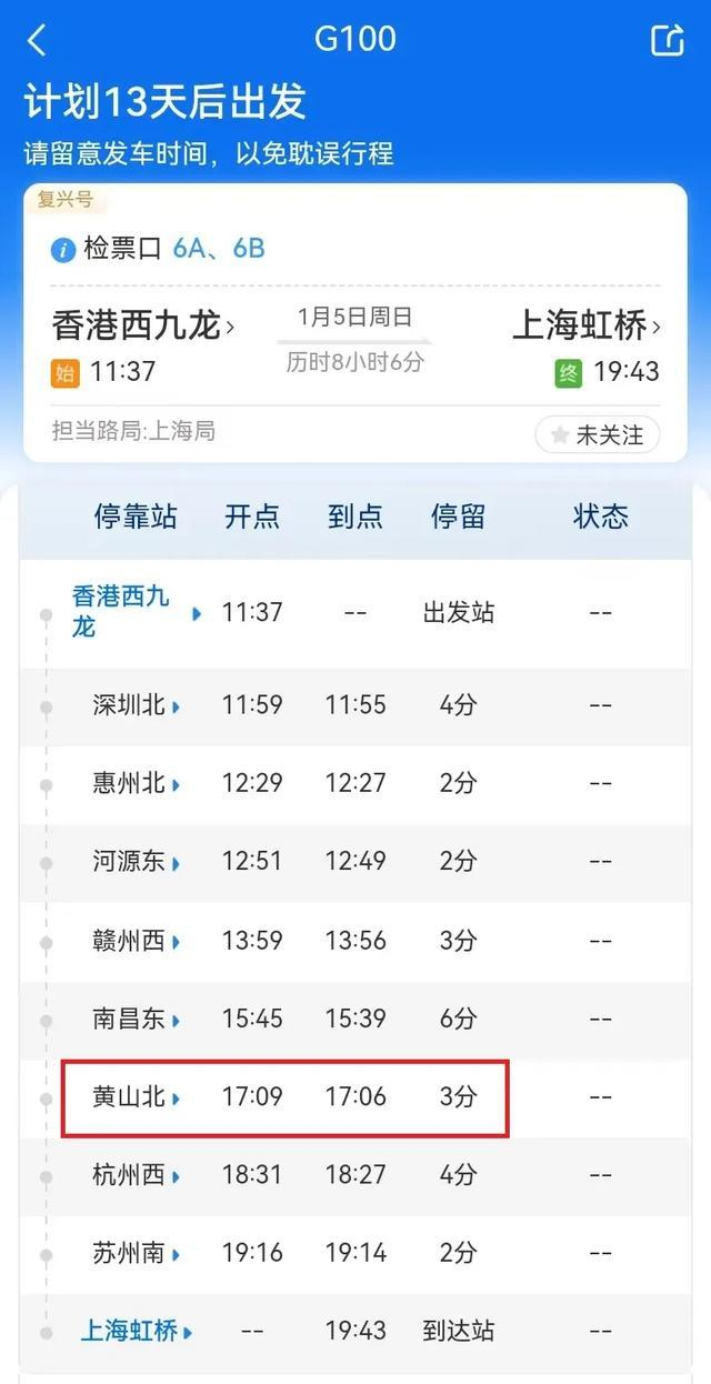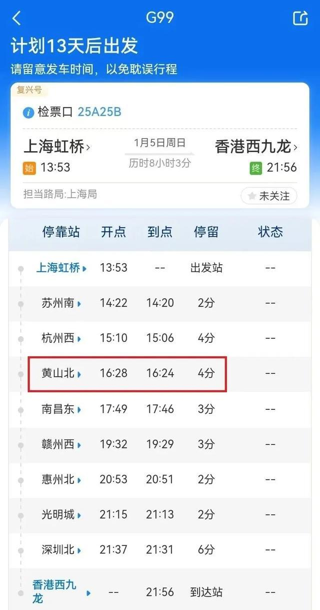 明年1月5日起执行!黄山香港往返,高铁直达!全程约5个半小时