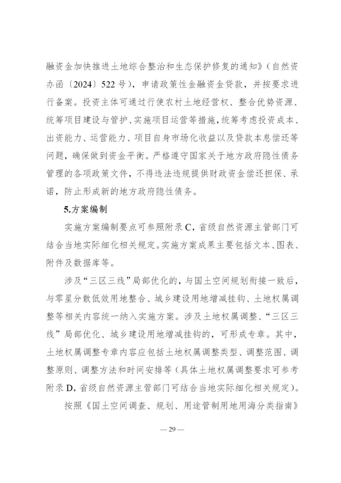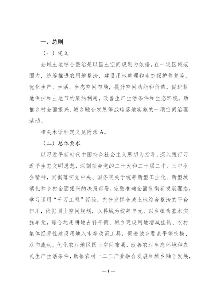近日,自然资源部办公厅印发《全域土地综合整治实施指南(试行)》,主要内容包括正文和附录两部分,正文包括总则、整治内容与要求、实施条件与负面清单、实施路径、实施方案编制与报批、项目管理、监测监管、维护群众合法权益等内容;附录包括术语和定义、“三区三线”调整情形和程序、实施方案编制要点、土地权属调整基本要求等内容。