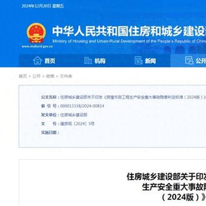 住房城乡建设部印发《房屋市政工程生产安全重大事故隐患判定标准(2024版)》