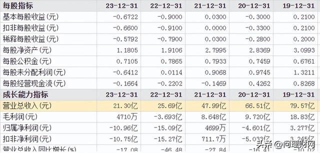 业绩方面,2021年至2023年公司实现营收分别为47.99亿元、25.69亿元、21.30亿元,而自2019年以来其营收已经连续5年下滑;同期净利润分别为4699万元、-15.09亿元、-10.96亿元……