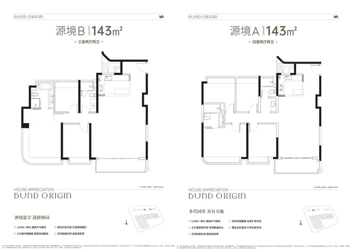 建面约143㎡户型,分为A/B户型,功能侧重完全不同。