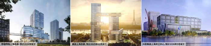 · 中交滨江广场已竣工;· 中节能项目预计2024年12月竣工;· 美团上海总部预计2025年底竣工;· 字节跳动、滨江创智中心、哔哩哔哩上海总部预计2026年竣工。