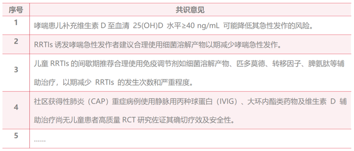 表1儿童常见呼吸系统疾病免疫调节剂合理使用共识意见(部分)