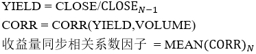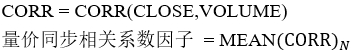 1、量价同步相关系数因子计算公式: