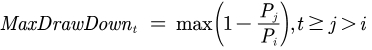 最大回撤反映了投资者忍耐亏损的极限,衡量了给定时间内最极端的亏损量。t日的最大回撤计算公式如下: