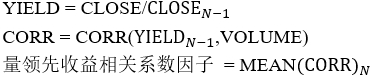 5、量领先收益相关系数因子计算公式: