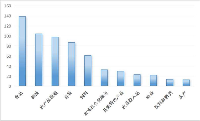 从行业分布来看,产业领域多元,盈利能力分化明显。500强企业的行业分布相对均衡,食品、粮油、农产品流通、畜牧和饲料等行业入围数量相对较多。其中,食品行业入围数量达到139家,在500强企业中占比最高;粮油和农产品流通行业分别以104家和98家的入围数量排名第二和第三,显示出500强企业在保证农产品稳定供应中的重要作用。与上一年度相比,入围的粮油企业增加了21家,农业社会化服务企业增加了13家,水产企业减少了12家。