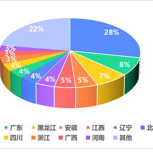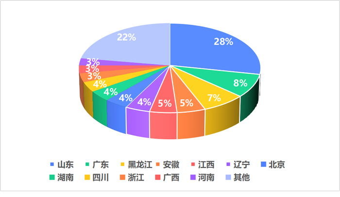 从区域分布看,2023年500强企业中,东部地区企业数量达到264家,占比52.80%。虽然其同比下降3.40个百分点,仍占有绝对优势。中部地区占18.20%,同比增加3.80个百分点;西部地区占15.60%,东北地区占13.40%,与上一年度基本持平。从省份分布看,山东(占28.20%)、广东(占8.40%)、黑龙江(占7.40%)排名前三。超过20家的省份还包括安徽(24家)、江西(23家)、辽宁(21家)和北京(20家)。