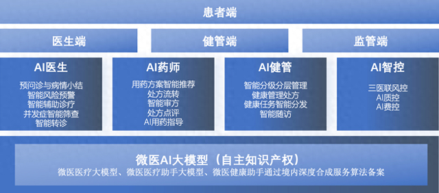 (图片说明:微医基于自研大模型搭建的AI产品应用体系)