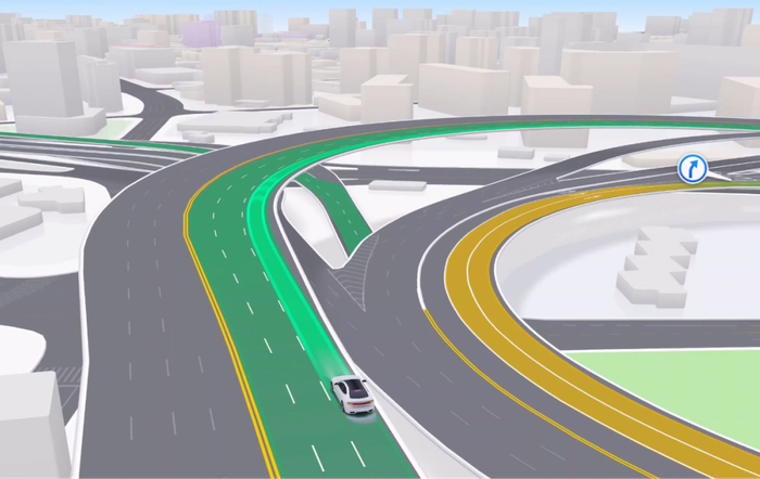 在全域车道级场景下,更多的道路元素得到精细化渲染,全新的三维立体地图被投射至智能座舱和车机屏幕,并通过全场景车道级引导,进一步提升导航效率与用户体验。