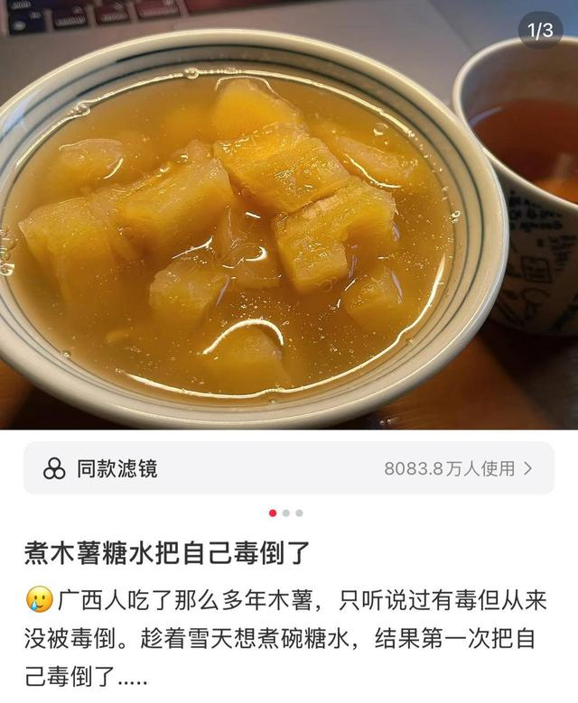 天气寒冷,喝一碗热乎乎的甜汤,从头暖到脚。“谁还不会做糯叽叽的木薯糖水”“快去煮这个糖水,软糯香甜”……在小红书、抖音等平台上,不少网友跟风尝试并晒出自制的木薯糖水成品照。喜欢吃的人都觉得,木薯糯叽叽的口感让人“上头”,好吃到“原地转圈”。然而,记者也发现有大批网友表示自己在尝试后出现了不同程度的恶心、呕吐、头痛、腹泻。网友“吨吨的奇妙动机”更是发帖称,自己在连吃四碗之后又吐又拉达七八次,直接进了医院,直呼“再也不馋了,已老实,求放过!”