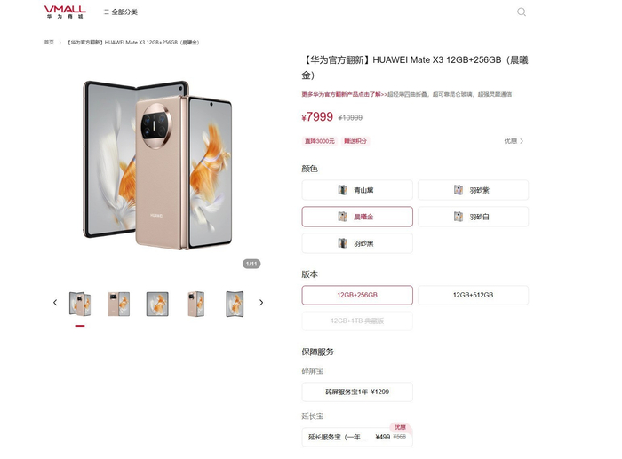 性价比更高了!华为Mate X3官翻版降至7999元