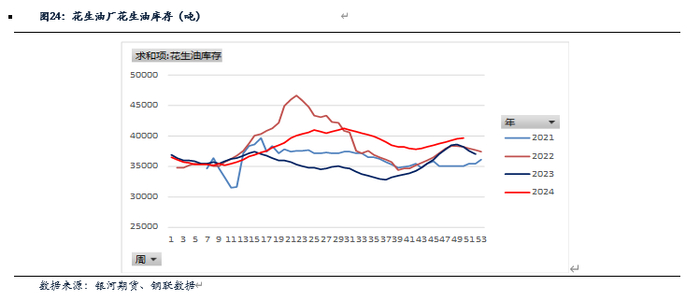 三、花生油厂开机率高于去年,库存高于去年,季节性规律明显