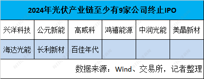此外,还有至少9家光伏产业链的公司在2024年终止IPO,包括兴洋科技、公元新能等。