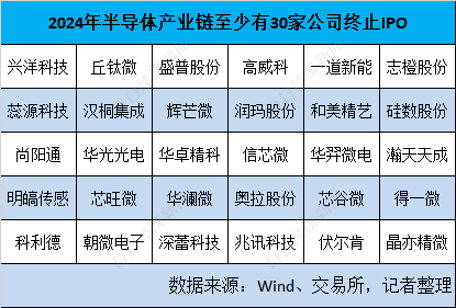 至少有30家半导体产业链公司在2024年终止IPO,这些公司包括兴洋科技、丘钛微、晶亦精微等。