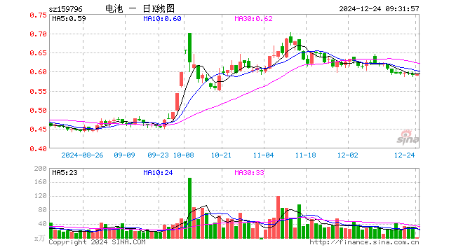 电池50ETF(159796)开盘跌0.34%,重仓股阳光电源跌0.33%,宁德时代跌0.19%