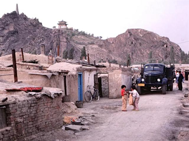 这里是红山脚下,准确来讲应该是红山村。一辆解放牌卡车停放在一户人家旁,这就是很多乌鲁木齐人过去住的小平房。