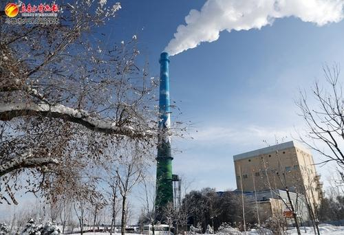 现如今,一号立井早已不在,原来的位置上建起了集中供热的锅炉房,高高的烟囱上画着博格达雪峰的图案,蓝天白云映衬,树上的雪花为前景,颇为美丽。