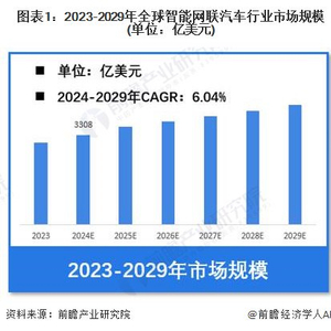 2023年全球智能网联汽车行业市场规模达到3018亿美元。初步估算,2024年全球智能网联汽车行业市场规模将达到3308亿美元,未来五年复合增速达6.04%。
