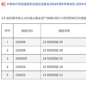 2024年以来,中国人民银行反复提示国债风险,不过,华泰保兴安悦逆势而行,实现了高收益率;而华泰保兴尊利更是押注了股性很强的可转债及高股息银行股,这也成就了该基金的高收益率。